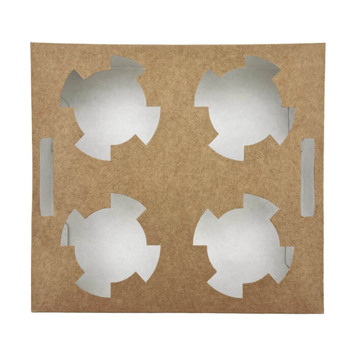 4 Cup Holder Tray – Kraft Brown Paper, Fits Standard Drink Sizes