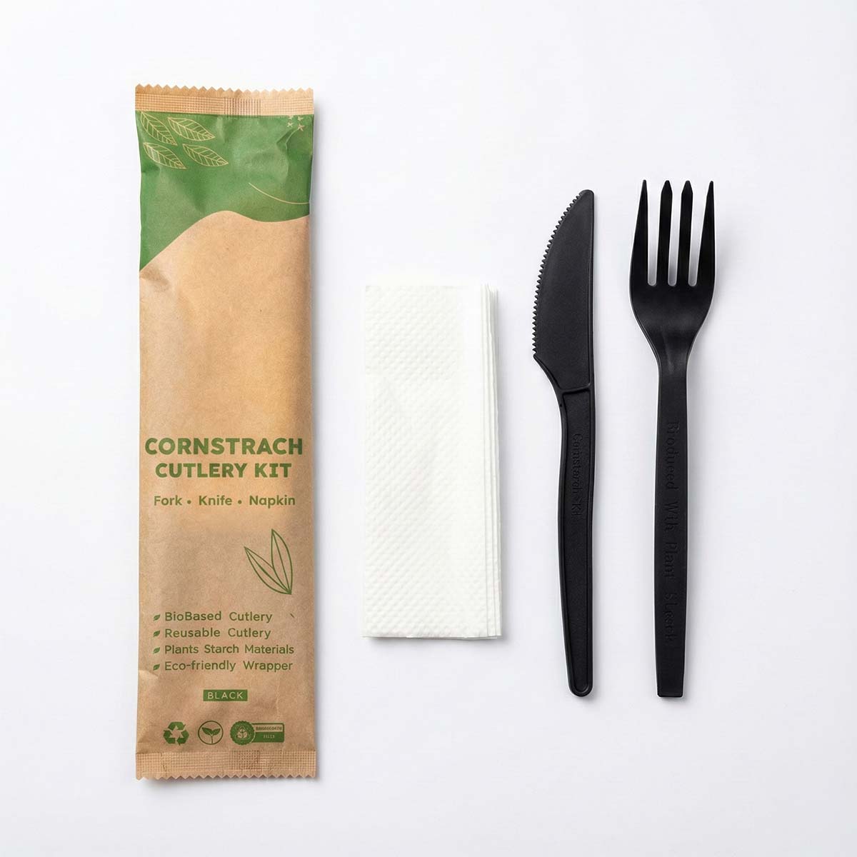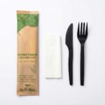 Upgrade your food delivery and catering with this sophisticated, eco-responsible black cutlery set. Designed for the modern, high-end experience, it offers the perfect blend of style, comfort, and sustainability. High-End...