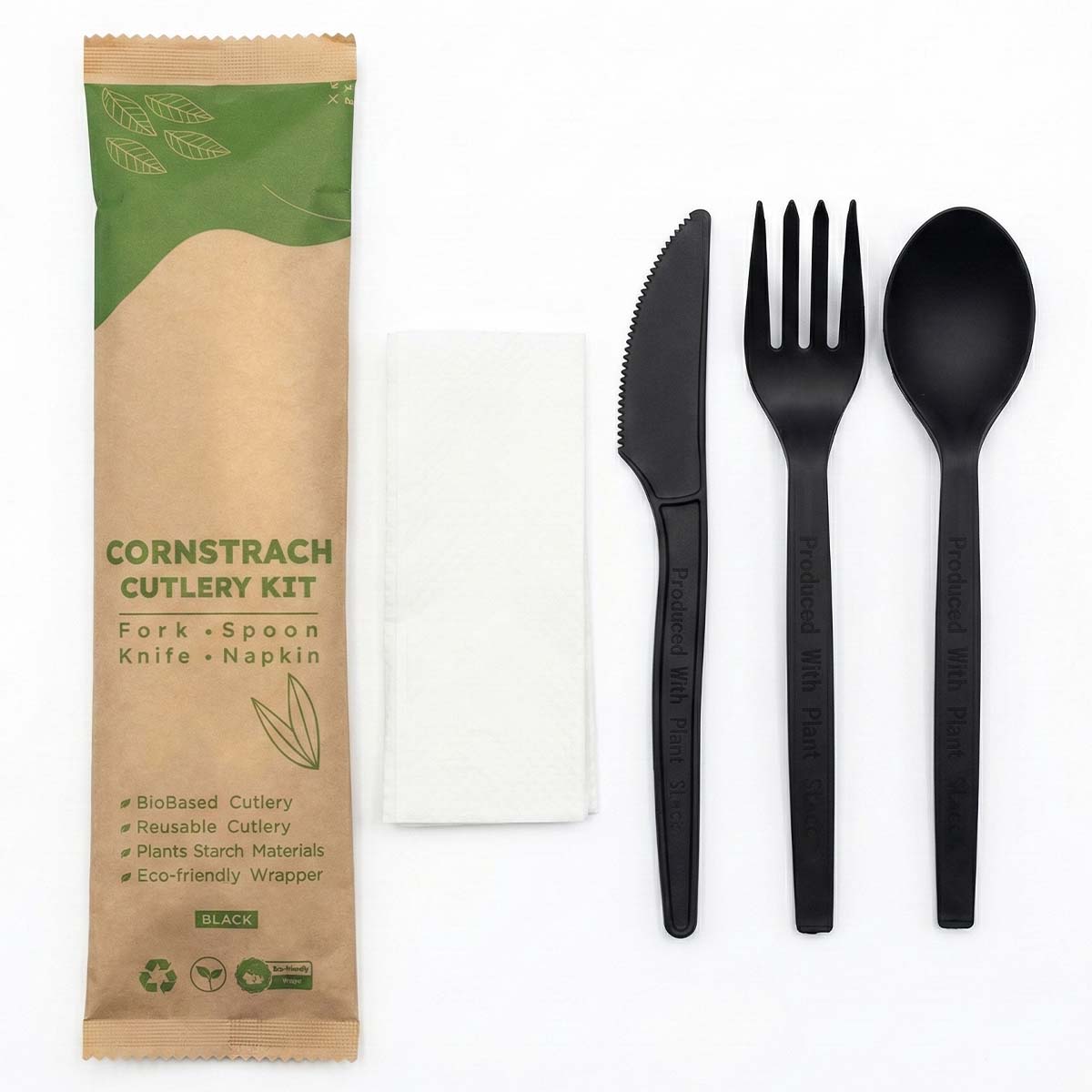 | Cutlery Set (4 in 1) | PSM Corn Starch | Black | 17cm | |