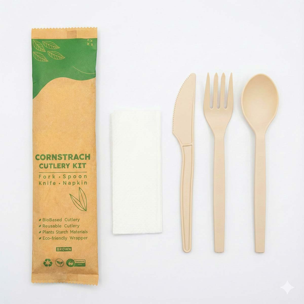 | Cutlery Set (4 in 1) | PSM Corn Starch | Brown | 17cm | |