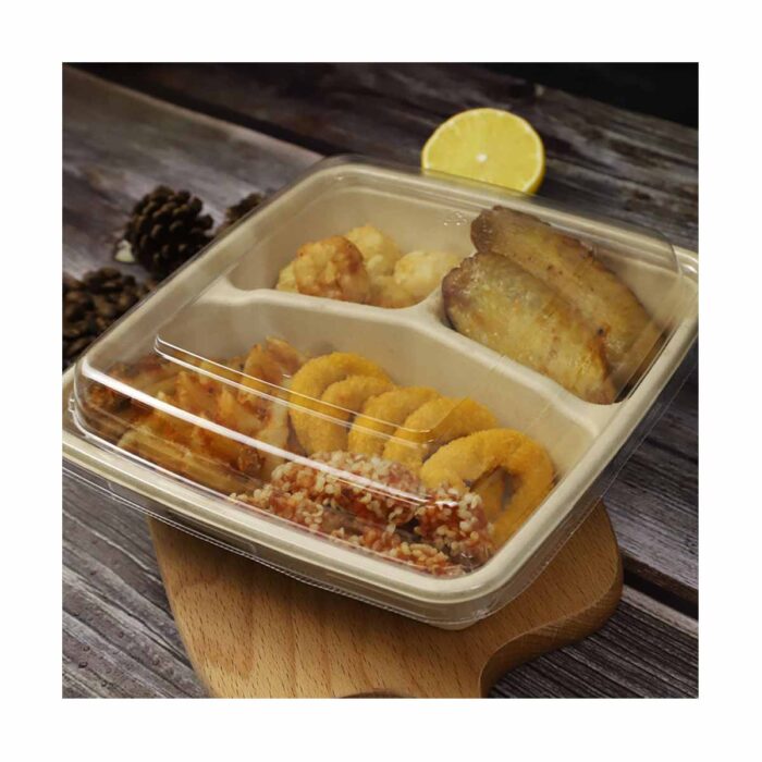 ECOPULP Biodegradable Bagasse Meal Plate Square 3 Compartment with Pet Lid 1000 ml | |||