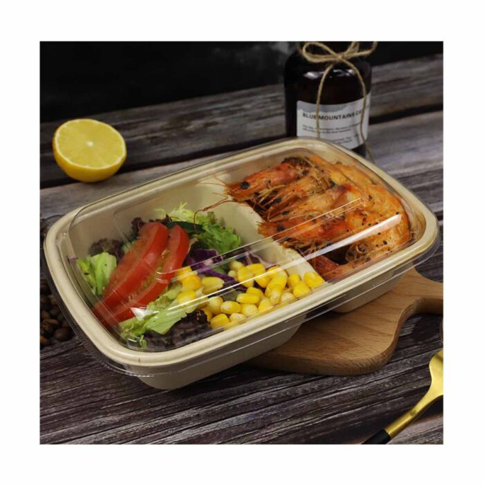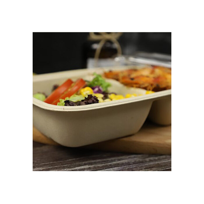 ECOPULP Biodegradable Bagasse Rectangle Lunch Box 2 Ccompartments with pet Or PP Lids 900 ml | |||