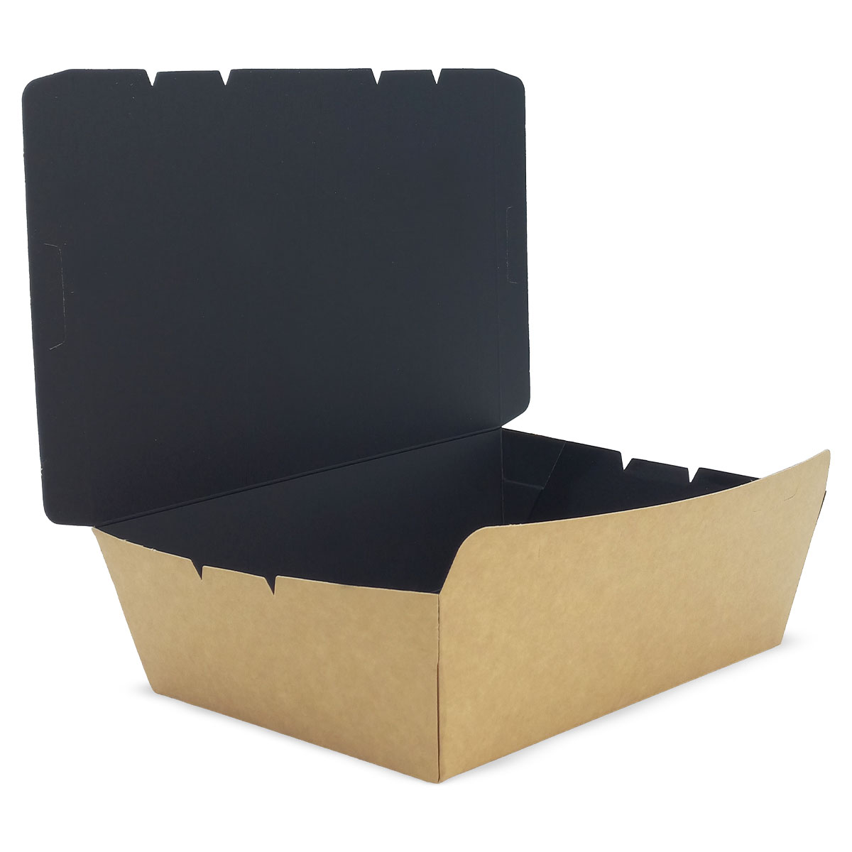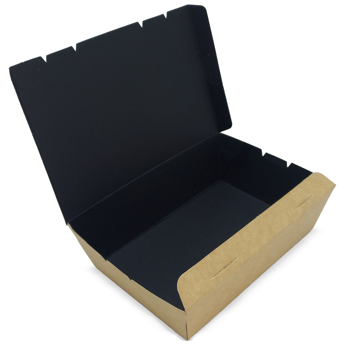 Upgrade your takeout experience with these stylish lunch boxes, featuring a natural Kraft exterior and a sleek black interior that makes food colors pop. Premium Presentation: The modern black lining...