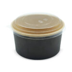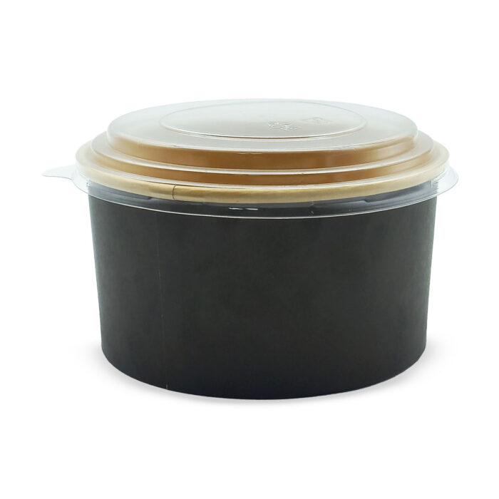 | Round Paper Bowl with PET Lid - Black / Kraft Interior (1000ml) | |