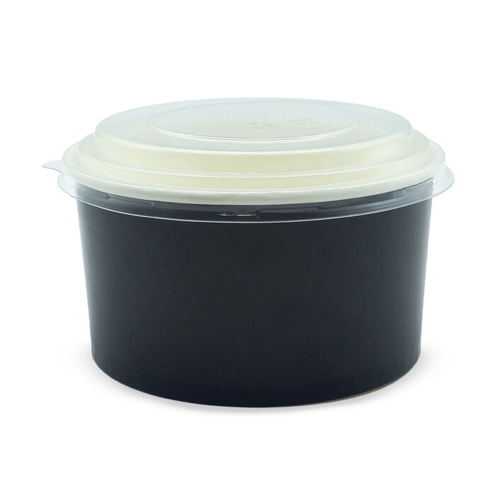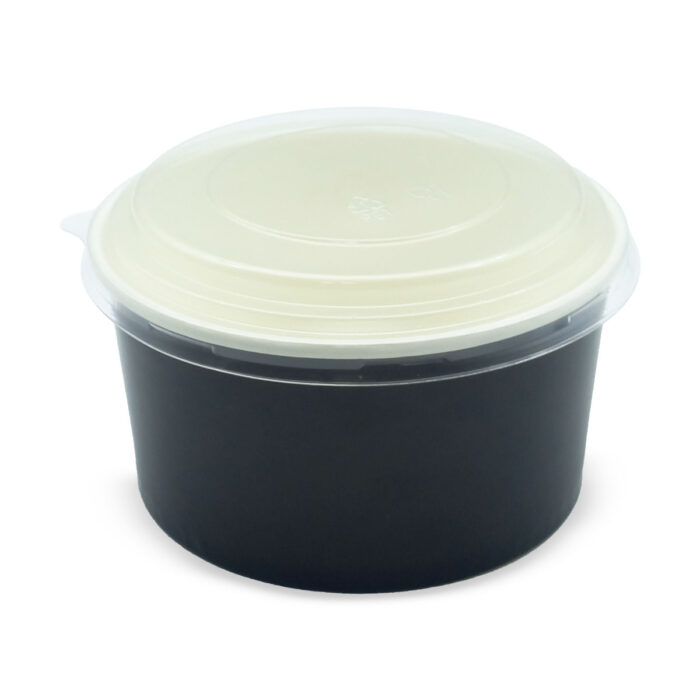 | Round Paper Bowl with PET Lid - Black / White Interior (1000ml) | |