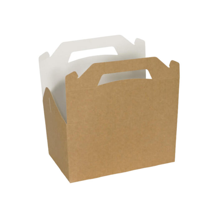 TAKE OUT HANDLE Paper Box Carrier , Kids Meal 19-14-11.5 | 23-14-12.5 White, Kraft